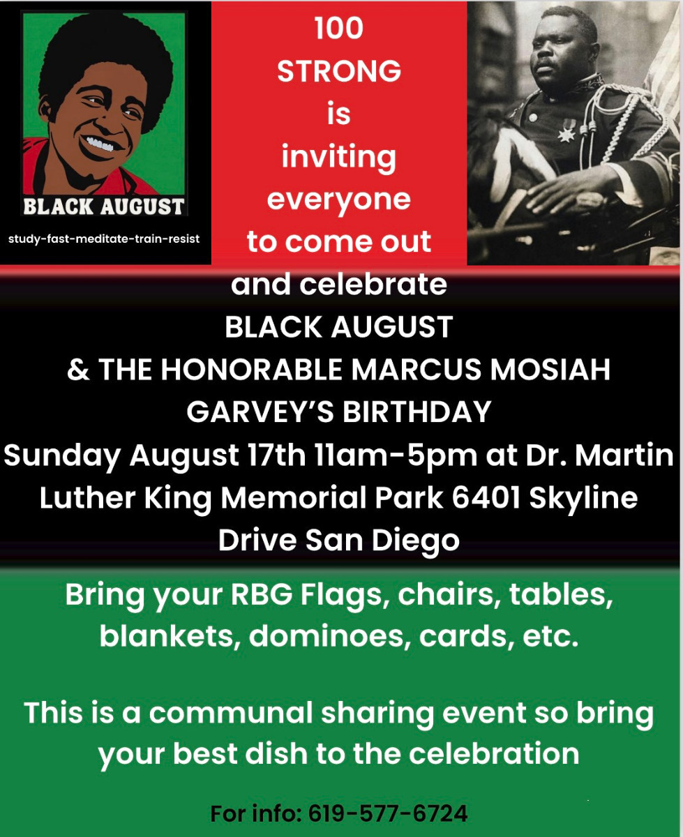 We will have a quick lesson on Black August and Marcus Garvey, meditations, music and communal food for everyone to share.