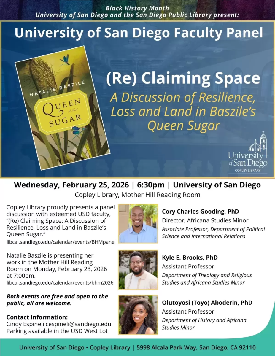 Copley Library proudly presents a panel discussion with esteemed USD faculty, "“(Re) Claiming Space: A Discussion of Resilience, Loss and Land in Baszile’s Queen Sugar.”