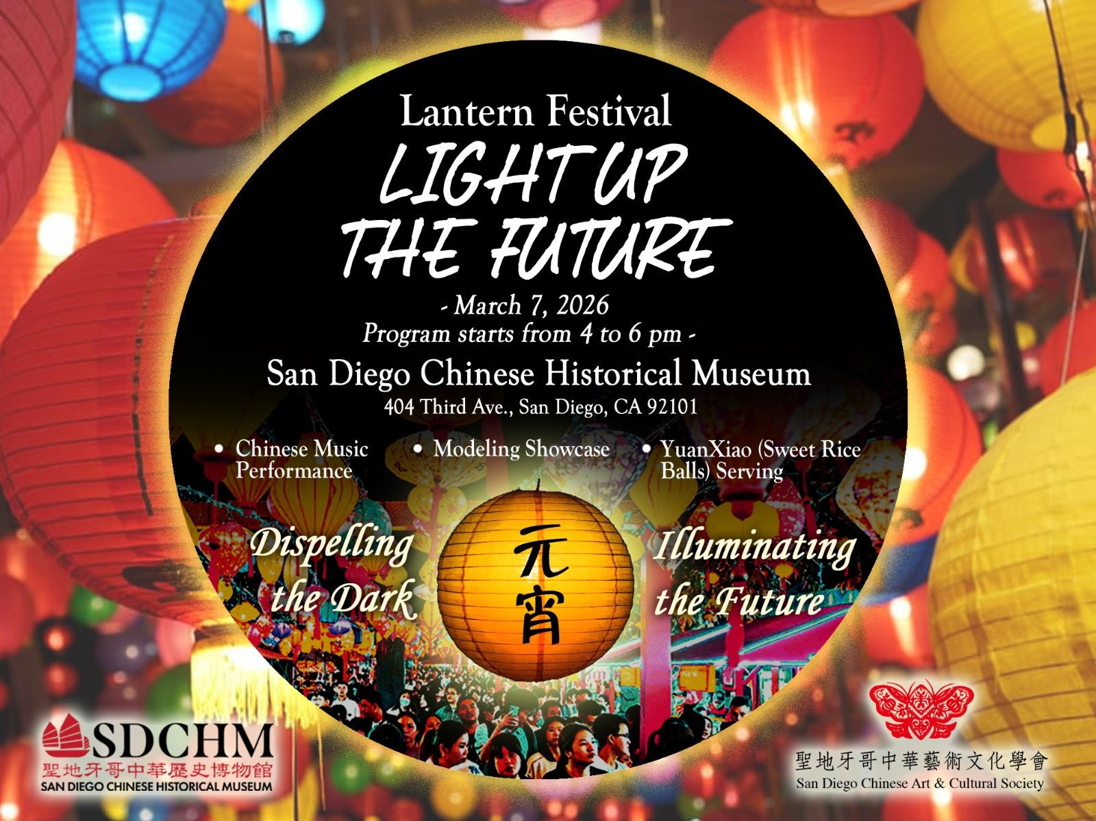 The San Diego Chinese Museum cordially invites the community to its "2026 Lantern Festival — Light Up the New Year" celebration, welcoming the new year together amidst the glow of festive lanterns and warm community spirit.