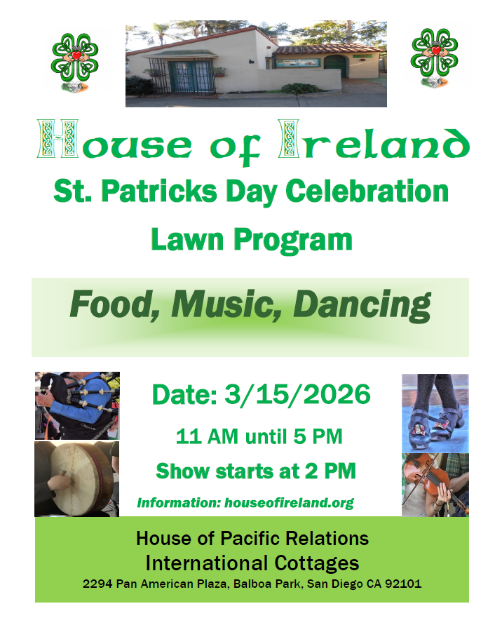 | 11:00 AM | House of Ireland Lawn Program House of Ireland celebrates St. Patrick's Day with their annual lawn program featuring Irish food, music and dancing.
