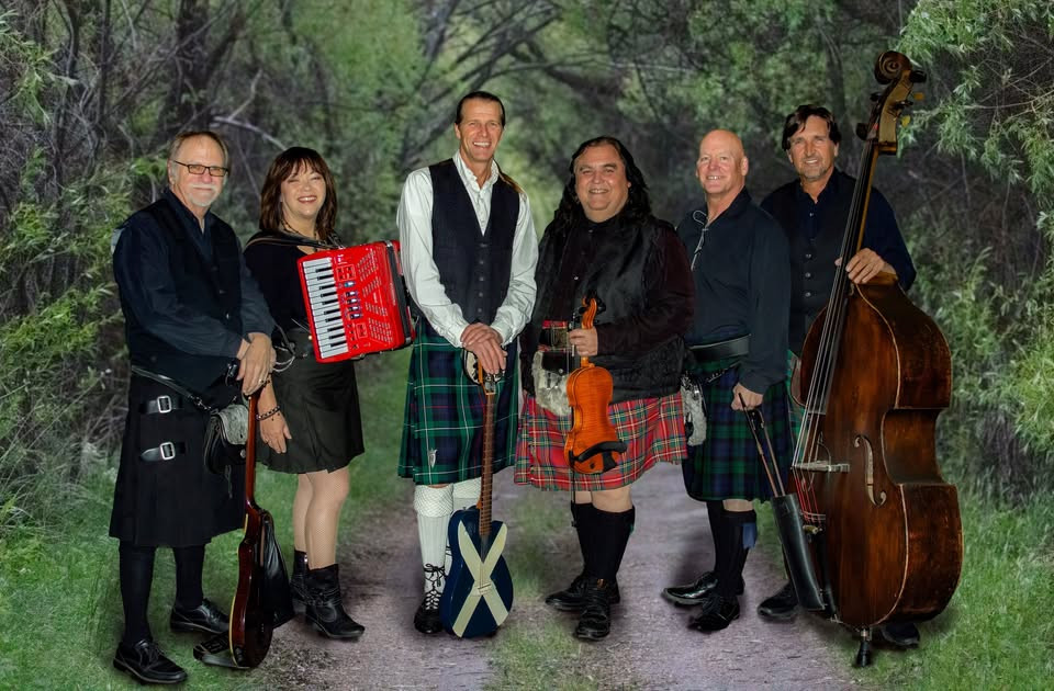 Highland Way brings a lively performance of “Scirish” (Scotland and Ireland’s) song, mixed with rapid-fire-fiddling, guitar, accordion, bass, percussion, and humor. Scotsman Brian Caldwell, from Glasgow and now Escondido, leads the 6-piece band in songs of work and play, conflict, love, and the gathering of friends. He is joined by master of all-things-strings Paul Graham Castellanos, Sharon Whyte (accordion, keyboard, vocals), Jim Soldi (bass. guitar, vocals), Glen Fisher on bass, and Bob Sale on percussion.