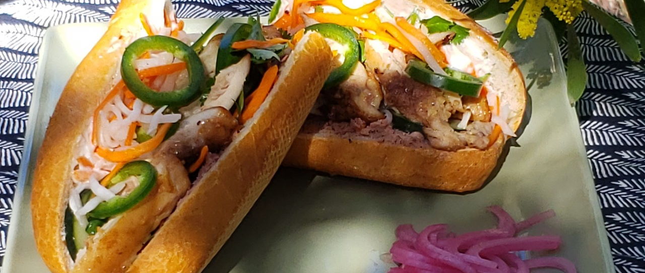 Our recipe of the month is for Bánh Mì Gà Nướng. Some people believe that Bánh mì are the sandwiches to end all sandwiches. We agree! Combining fresh and pickled vegetables with grilled chicken, Bánh mì gà nướng sandwiches make a light, fresh-tasting and very satisfying lunch.