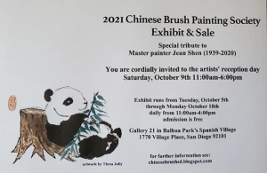 Members of the Chinese Brush Painting Society (CBPS) of San Diego are extremely excited to exhibit their original artworks at this year's show. The paintings are created using practiced brush strokes and traditional tools of this ancient art form (rice paper, ink, colors, and animal hair brushes). The paintings depict both traditional and contemporary subjects. Various brush painting styles (detailed and spontaneous) will be on exhibit - highlighting the diversity and breadth of techniques used by modern brush artists. Our artists range from students to accomplished painters and calligraphers, many who have studied with masters in China. All artwork will be for sale, including unframed matted paintings, cards, and other small gifts. We look forward to seeing you at this year's show!