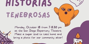 Historias Tenebrosas is back in person! This year we will gather in the theatre to make sugar skulls, build a community altar, and share spooky stories.