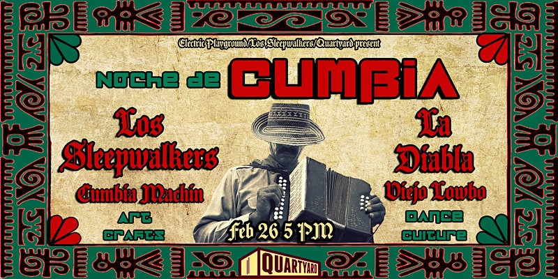 Noche de Cumbia featuring Los Sleepwalkers, La Diabla, Cumbia Machin & Viejo Lowbo. An evening of Dance, Culture, Art & Crafts outdoors under the stars at Quartyard. Full bar, craft beer and a special Latin food menu as well.