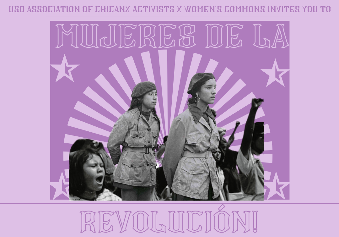 Join the USD Association of Chicanx Activists (AChA) and the Women's Commons. to celebrate and uplift women revolutionaries and have discussions around decolonization, liberation, abolition, and community care. There will be activities, free food, entertainment and panelists. Panelists include Vianney, Vicki Estrada, and Yanet Lopez. This event is open to the public, free parking, and spanish translation will be provided.