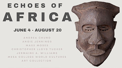 Echoes of Africa celebrates classical and contemporary artistic traditions by African and African American artists. This two-part exhibition features African artifacts from San Diego Mesa College's World Cultures Art collection coupled with artworks produced by local contemporary artists. A dynamic group of artifacts will be exhibited, featuring objects that demonstrate the mastery of African artisans in metal, wood, ceramics, beadwork, and textiles. The Fine Arts gallery will highlight artworks by contemporary local artists in conversation with select African artifacts, echoing and responding to aspects of their materials, symbolism, and creative process. The exhibition pays tribute to the ongoing cultural and artistic influence of African art on African American artists and celebrates our connections to the spirit and history of African and African American culture. Curated by Dr. Denise Rogers and features work by Andrea Chung, Angie Jennings, Christopher Lloyd Tucker, Maxx Moses, and Jermaine Adeshola Williams. Opening Reception will take feature a performance by the World Beat Center African Drum & Dance group. Following the performance, guests will be welcomed into the exhibit areas, both in the Popular library on the 1st floor as well as the Fine Arts Gallery on the 9th floor. Refreshments will be served.
