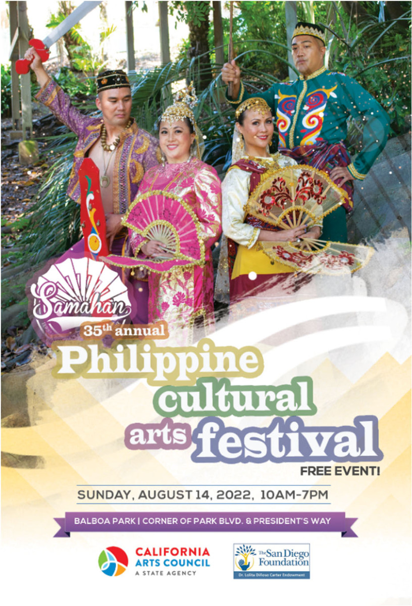 The Philippine Cultural Arts Festival returns to Balboa Park on August 14, 2022, after two years of absence due to the COVID-19 pandemic lockdown on public events. The SAMAHAN Filipino American Performance Arts & Education Center will hold its 35th Philippine Cultural Arts Festival on Sunday, August 14, 2022 from 10:00 am to 7:00 pm in Balboa Park, at the corner of Park Boulevard and Presidents Way. Admission is FREE! A family-oriented event focused on cultural heritage, entertainment and networking, this festival appeals to the whole family and allows San Diego locals as well as tourists the opportunity to learn about Philippine culture and performing arts through dances and music. The one-day event showcases performing arts with presentations of colorful folk dances of the different regions of the Philippines by SAMAHAN’s graceful dancers accompanied with live music of the SAMAHAN Rondalla and Kulintang (gong) Music Ensembles. Featured, as well, will be review of the traditional and indigenous Filipino attire, mainstream entertainment such as contemporary dances and vocals, dances by invited performers and martial arts exhibitions. Admission/Cost: FREE> Location: President's Way Balboa Park San Diego, CA Sunday, August 14 - 10:00 AM to 7:00 PM