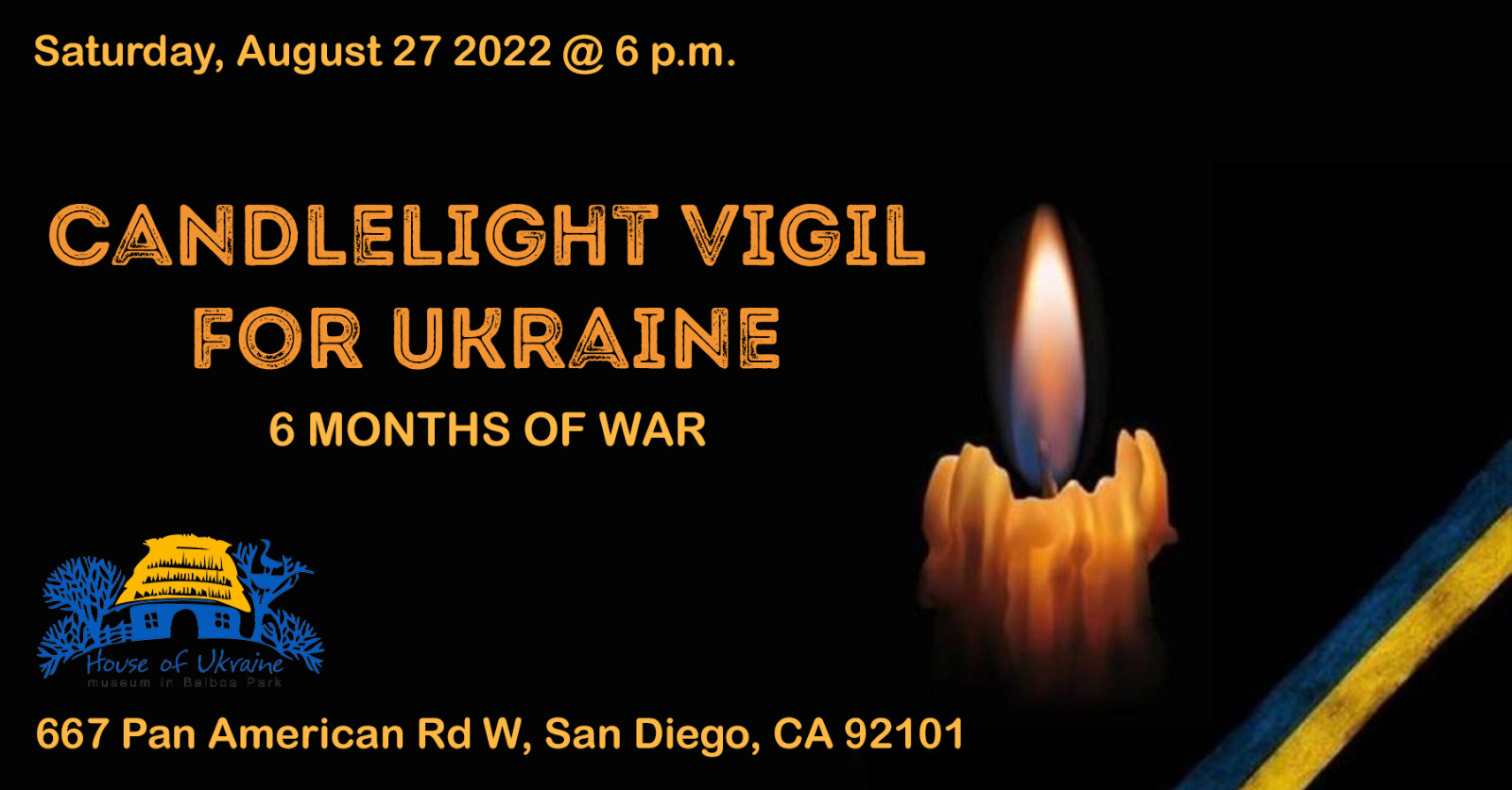 Please join the House of Ukraine for a candlelight vigil for all the human lives lost by Ukraine in the war with Russia. Bring signs, flags, Ukrainian shirts, etc.