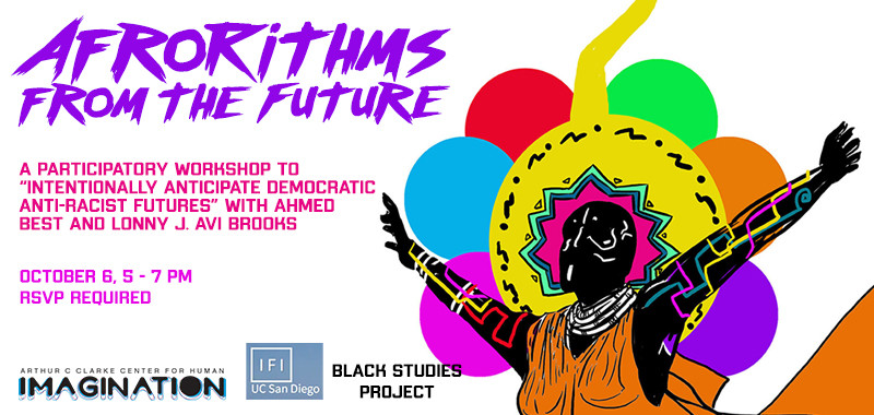 he Clarke Center from Human Imagination, the Indigenous Futures Institute, and the Black Studies Project at UC San Diego invite you to join us for an AfroRithms from the Future workshop to collaborate on imagining more inclusive and just futures, led by Lonny J. Avi Brooks, Ahmed Best, and Jade Fabello.