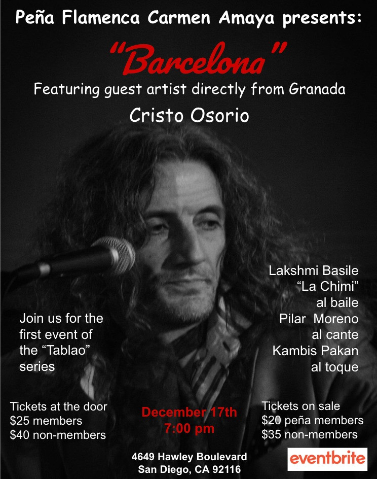 Join us for this very exciting inauguration of Peña Carmen Amaya’s Flamenco Tablao series.