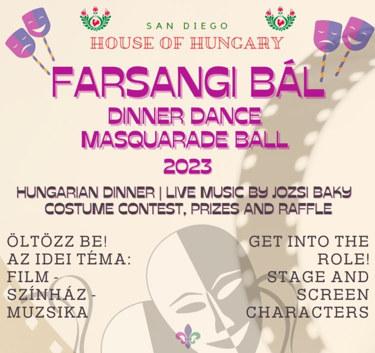The House of Hungary will hold a masquerade ball with traditional carnival foods, live music by Józsi Baky, a costume contest, and a raffle.