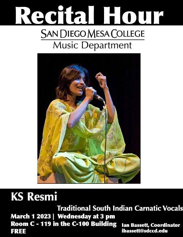 South Indian Carnatic K.S. Resmi vocalist at free weekly recital hour.