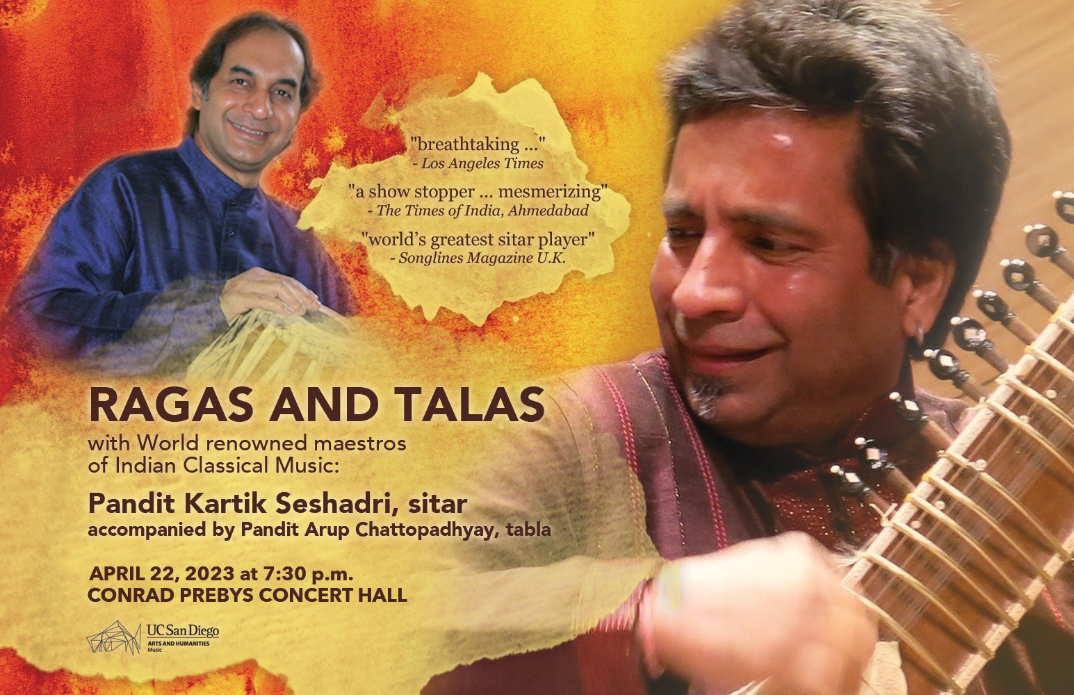 World renowned sitar virtuoso Pandit Kartik Seshadri presents an enchanting evening of Ragas and Talas in the Maihar tradition of Indian Classical Music. Accompanied by Pandit Arup Chattopadhyay on the tabla.