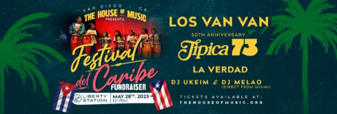 The House of Music presents "Festival del Caribe" a fundraiser to support our mission in providing music lessons and instruments to underserved youth in San Diego. You will enjoy a full day from 12pm-7m at NTC Park. the festival includes performances by: Los Van Van , Tipica 73 celebrating their 50th anniversary, and La Verdad from Los Angeles. Direct from Miami DJ Melao and San Diego's own DJ Ukeim all playing Cuban and Salsa music. We will have a culturally diverse blend of foods and drinks available for purchase. This is a 21 and up event. for more information and tickets, go to www.thehouseofmusic.org.