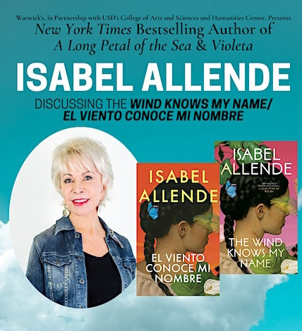USD’s College of Arts and Sciences and Humanities Center, along with Warwick’s bookstore, invite you to spend an evening with best-selling author Isabel Allende, who will be in discussion about her new book, The Wind Knows My Name, a novel that weaves together past and present, tracing the ripple effects of war and immigration on one child in Europe in 1938 and another in the United States in 2019.