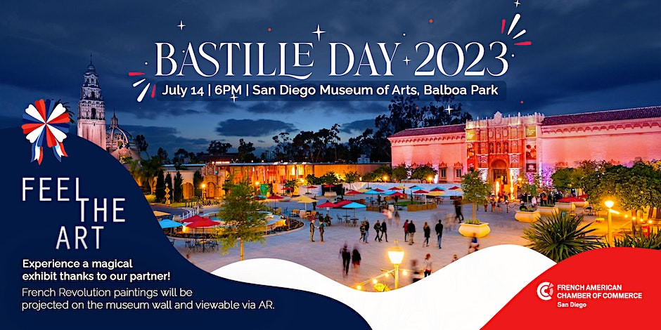 We are absolutely thrilled to announce our upcoming event - a unique Bastille Day celebration! We welcome you to join us on Friday, July 14, 2023, from 6PM to 10PM PT at the San Diego Museum of Arts, nestled in the heart of Balboa Park.