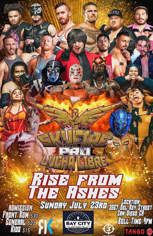 Welcome to Skyfire Pro Lucha Libre! We are proud to announce our first event at the Tango Del Rey in Pacific Beach! Please join us on Sunday, July 23rd, 2023, for this sure to be an incredible event.