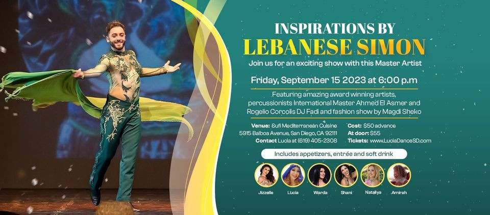 An exciting show featuring Superstar Lebanese Simon, and special guests Warda, Jizzelle, Shani, Nataliya, Amirah and Lucia. Troupe performances. Open dancing with DJ Fadi and Master Percussionist Ahmed El Asmer, Rogelio Corcolis. Dinner ticket includes all and open dancing!