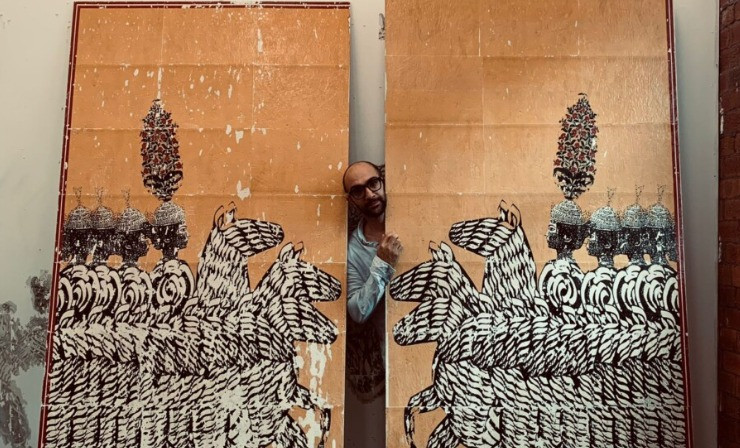 The artist will spend three days going methodically through the steps he takes to produce large-scale works such as Migration (2018), acquired by the Museum in 2021, on this occasion conceiving a diptych inspired by Iranian history and visual traditions.
