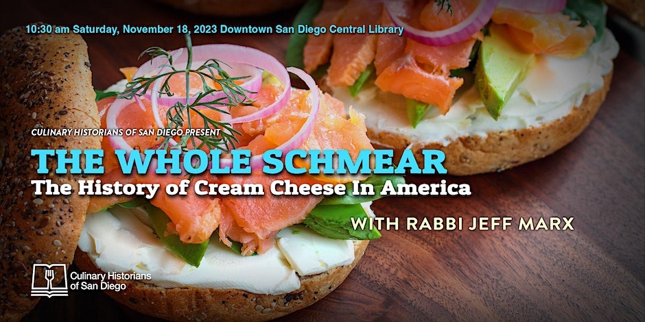 The Culinary Historians of San Diego present “The Whole Schmear: The History of Cream Cheese in America” by Rabbi Jeff Marx, in the Neil Morgan Auditorium. The event is free and open to the public. A tasting will follow the presentation.