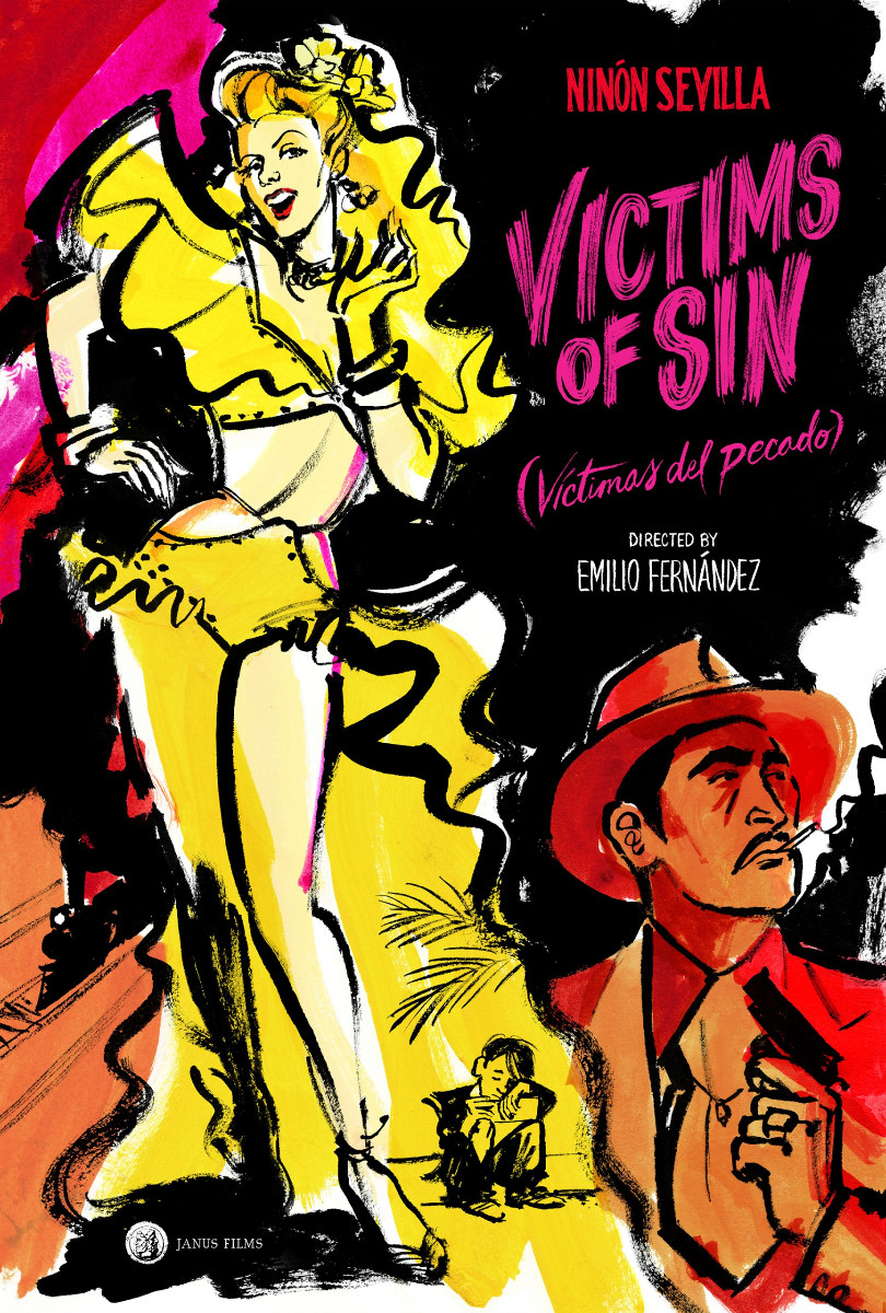 Rarely screened in the United States and long due for rediscovery, Victims of Sin is famed Mexican director Emilio Fernández’s unique blend of film noir, melodrama, and musical. Acting-dancing sensation Ninón Sevilla plays Violeta, a cabaret performer who adopts the abandoned child of Rita (Rita Montaner) and Rodolfo (Rodolfo Acosta), her murderous pimp. Motherhood forces Violeta to give up her career, but the kindhearted club owner Santiago (Tito Junco) saves her from a life of poverty and prostitution—until Rodolfo, freed from prison, seeks to reclaim his son. Best known for the award-winning María Calendaria (1944) and The Pearl (1947), Fernández infuses Victims with impassioned songs and performances by Sevilla, an icon of Mexican cinema and a purveyor of African, Caribbean, and Cuban dance styles.