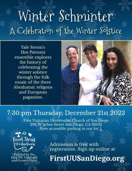 Hot Pstromi ensemble explores the history of celebrating the winter solstice through the folk music of the three Abrahamic religons and European paganism.
