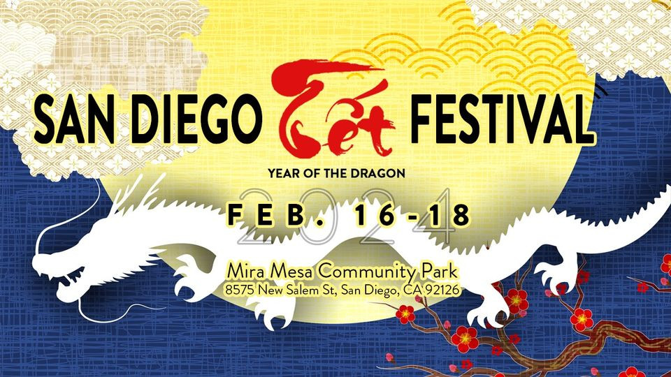 The 19th annual Vietnamese Tet Lunar New Year Celebration at Mira Mesa Community Park celebrates the Year of the Dragon. The 3-day celebration features free admission, several new attractions, activities, games, food and live entertainment, including, but not limited to, A-list Vietnamese singers and performers, lion dancing, firecrackers and some of our most popular programs, the Miss Vietnam of San Diego pageant, Step-Up Dance and Golden Voice.