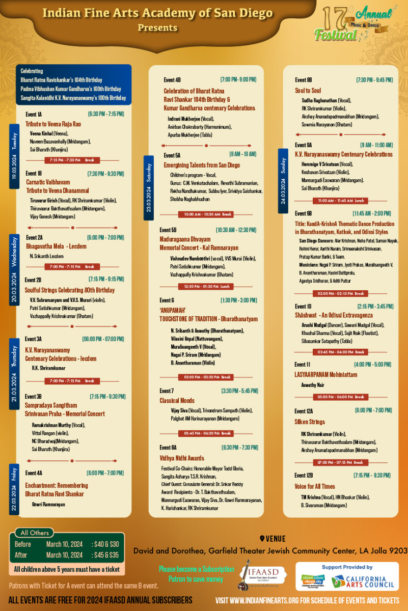 Be prepared to be delighted by a fantastic line-up of artists from India and North America, presenting vocal, and instrumental music, across Carnatic, and Hindustani genres, and various classical dance forms of India.
