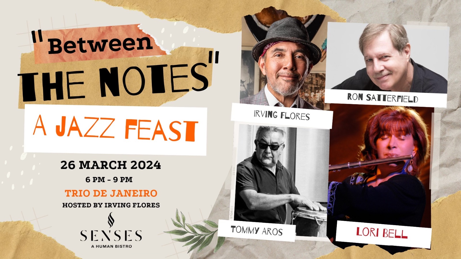 Dive into a vibrant evening of jazz with the acclaimed Trio de Janeiro at Senses Human Bistro! Join us on March 26th for a special "Between The Notes" Jazz Feast featuring an ensemble of exceptionally talented musicians.
