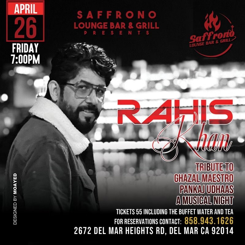 The Late Great Pankaj Udhas's Music Transcended Generations Through his soulful / heartfelt compositions. Join Rahis Khan for a night to appreciate the timeless ghazals and film songs he leaves us with! Save the date, Bring your family and friends