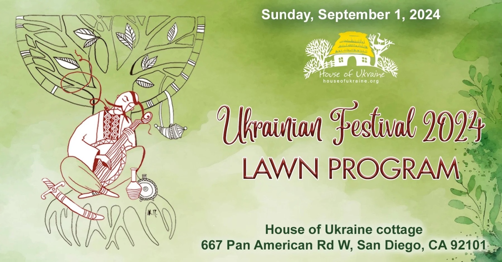 Enjoy our lawn program (2:00 PM to 3:30 PM) featuring the Chervona Kalyna Dance Group (Los Angeles), U3Zub, Iaroslava Caracosa, Ridna Shkola students, and more.