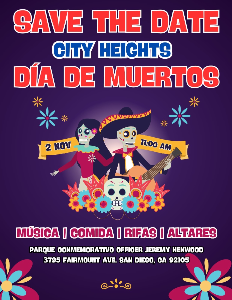 Celebrate the lives of friends and relatives who have passed away at the City Heights Dia de Los Muertos. People of all cultures will come together for community altars, face painting, mask making, and prizes for the best catrina and catrin contest, plus dancing, singing and music.