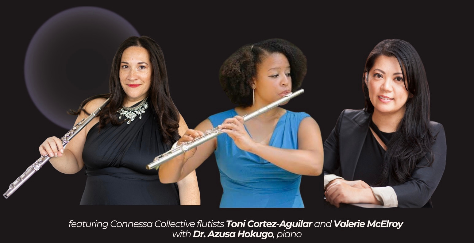 Six composers. Five countries. Three instruments. One unforgettable concert. Join us for Global Resonance: Part I and discover the beauty of music without borders. Experience Connessa Collective flutists, Valerie McElroy and Toni Cortez-Aguilar, in collaboration with Dr. Azusa Hokugo, piano.