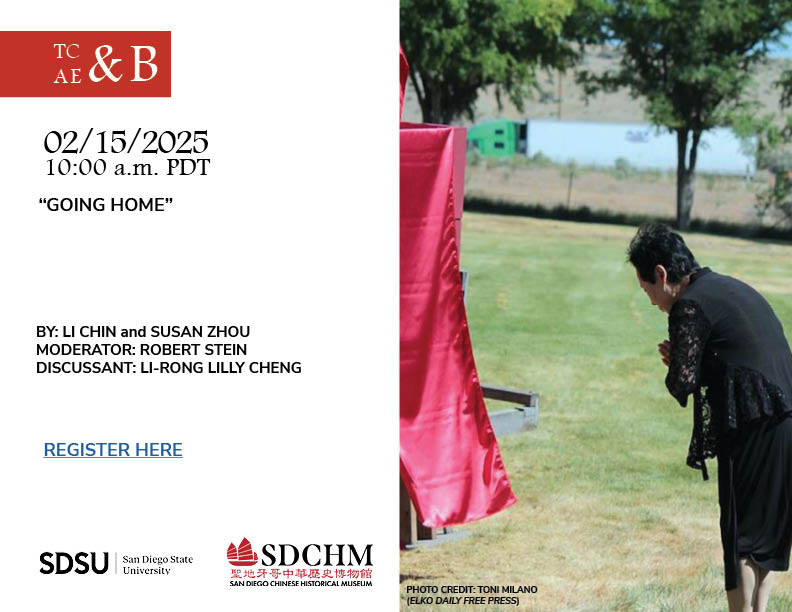 For the February 2025 edition of TCAE&B, filmmaker Susan Zhou will be joined by Li Chin, protagonist of Zhou's 2019 documentary, Going Home. The film follows the story of the discovery of coffin fragments containing Chinese railroad workers in Carlin, Nevada in 1996. The bones of the 13 Chinese workers were later sent to Reno, Las Vegas, and other places for research or tour exhibits. A group of city residents came together to advocate for the return of the Chinese ancestors to Carlin so they may be properly buried and memorialized. The film follows their story.