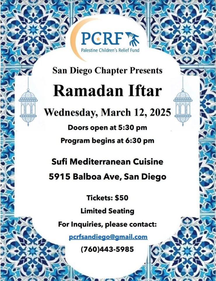 Please join us for our annual Iftar Dinner on Wednesday, March 12th at Sufi’s Mediterranean Cuisine for an evening of unity and giving as we reflect on the ongoing hardship faced by our children in Gaza.