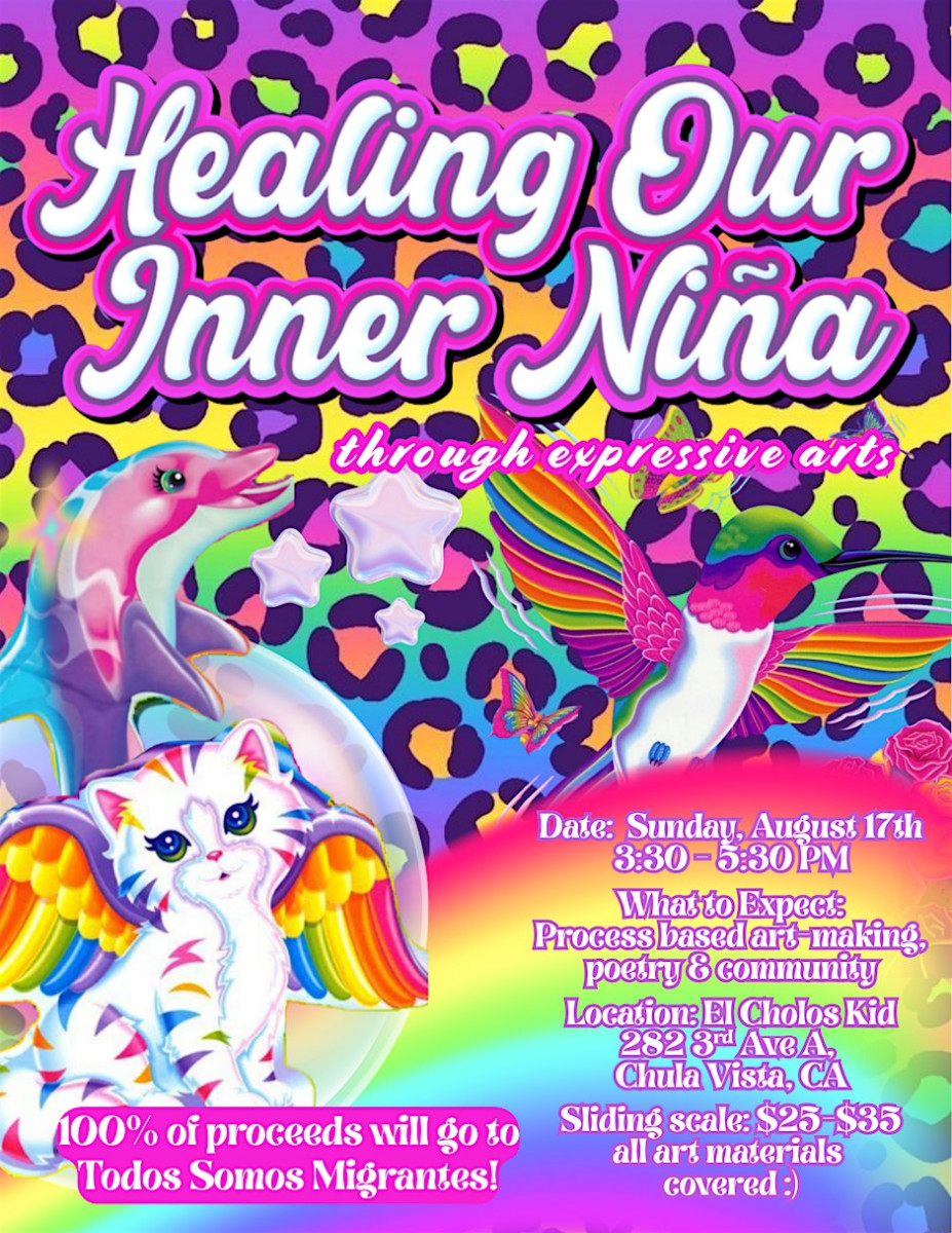 Discover the joy of reconnecting with your inner niña and unlocking your creativity. This workshop is perfect for anyone seeking personal healing, self-discovery, or an emotional release. This is a space for people who are seeking to be vulnerable and make genuine connections with others. All art supplies will be provided :) 100% of proceeds will go to TODOS SOMOS MIGRANTES, a local nonprofit that serves the migrant community.