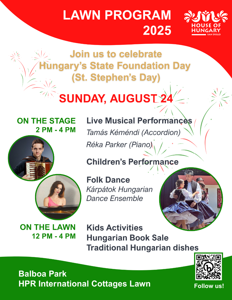 Join us to celebrate Hungary's State Foundation Day. Authentic Hungarian food, book fair, info tent and children’s activities from 12 PM. Stage program to celebrate the Hungarian State Foundation Day from 2 PM.
