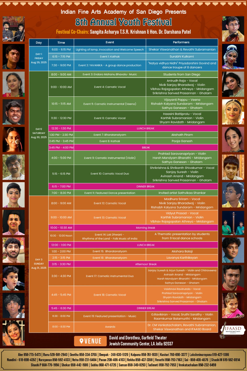 Indian Fine Arts Academy of San Diego (IFAASD) hosts its 8th Annual Youth Festival featuring 3 days of music and dance.