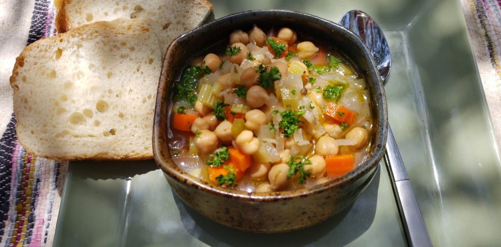 Revithia Soupa is thought to have originated on the island of Sifnos in the Aegean Sea. On Sifnos, Revithia is known as "Sunday Soup", but of course, it can be enjoyed any day of the week. Traditionally, Revithia is made in clay pots in which chickpeas were cooked with water in an oven overnight. You can approximate this manner of preparation by using a slow cooker or a Dutch oven. Although it is called a soup, its texture is more like a stew. Regardless of the method of cooking, the chickpeas should be very soft, almost, but not quite, to the point of mushiness.